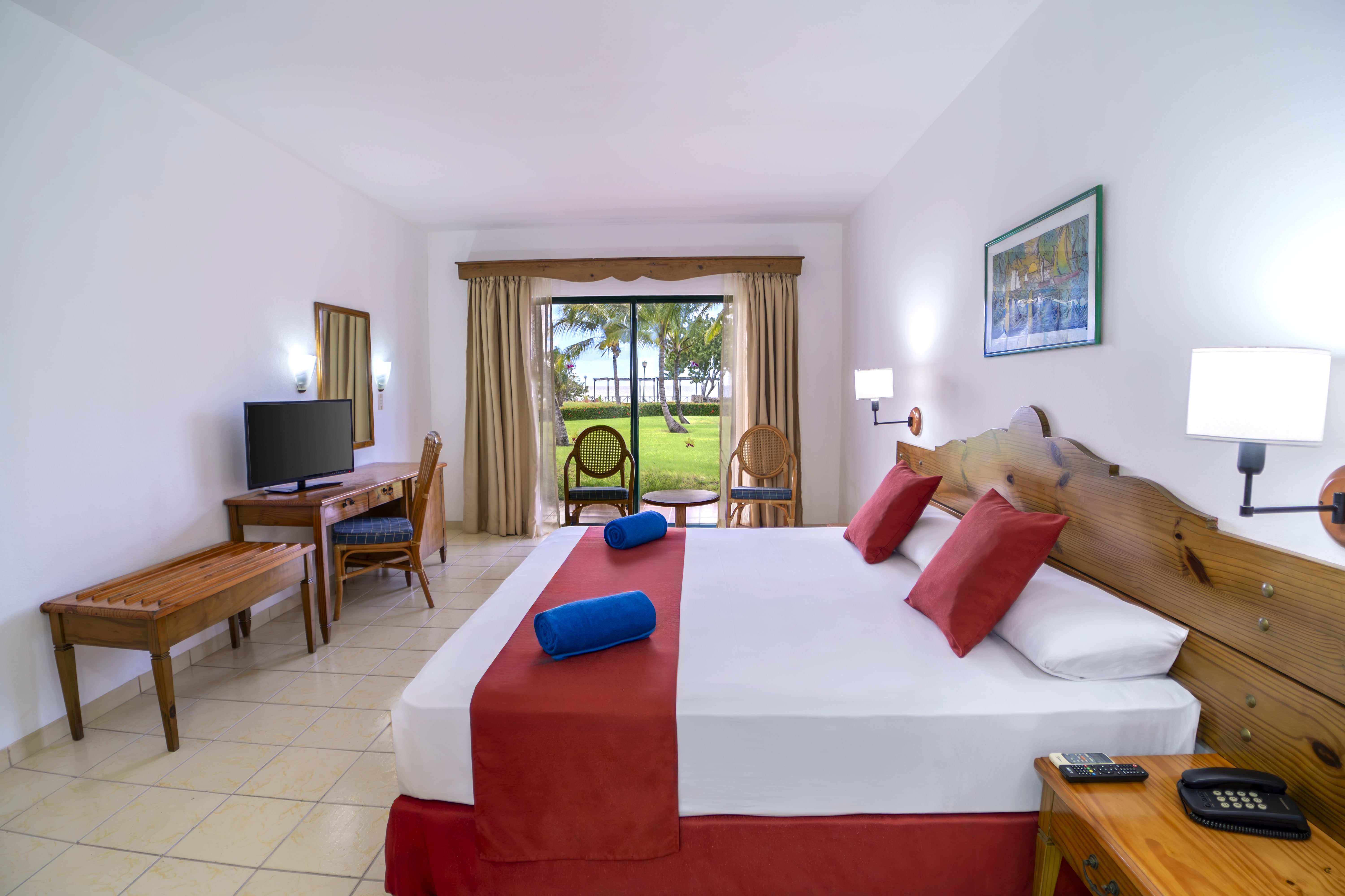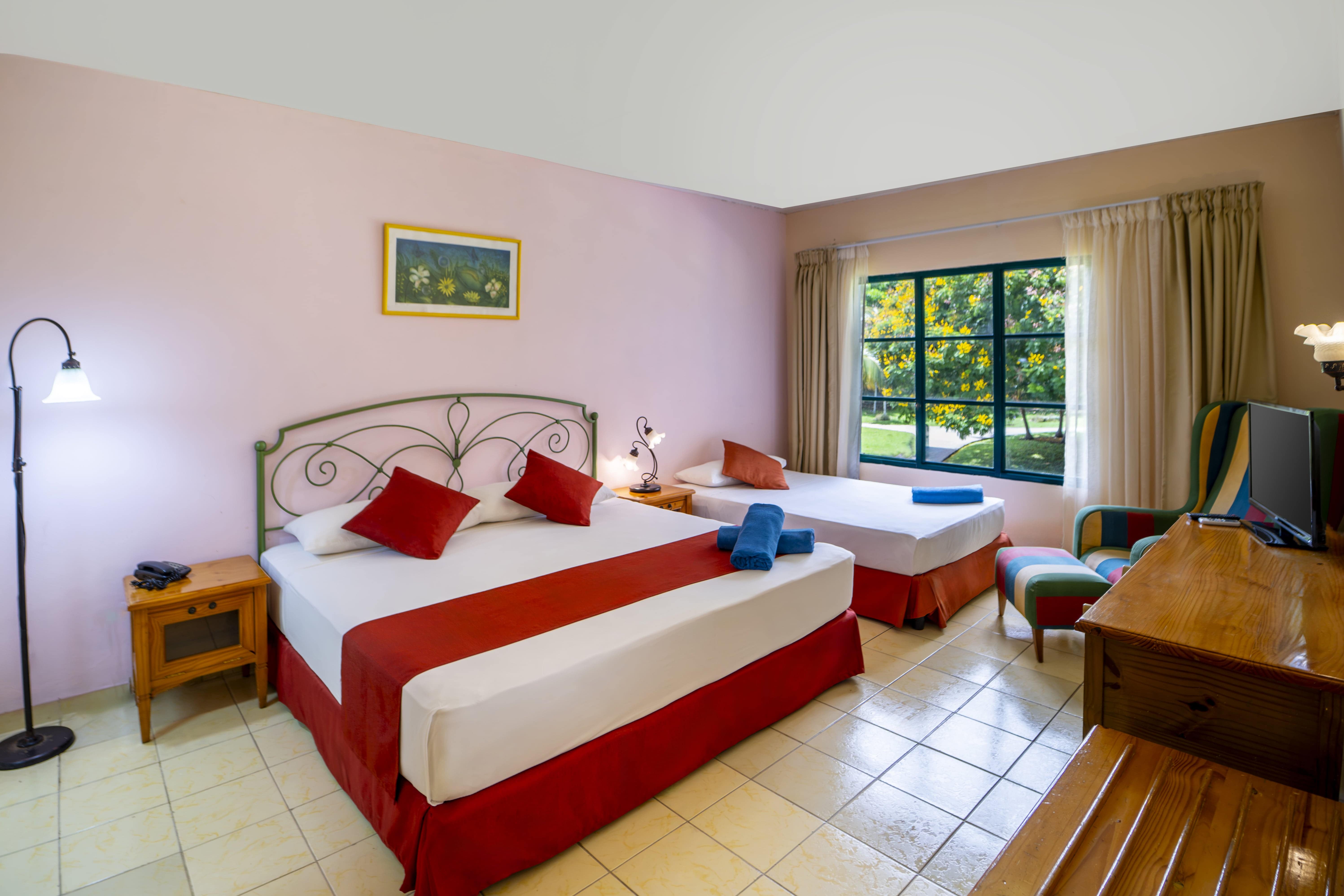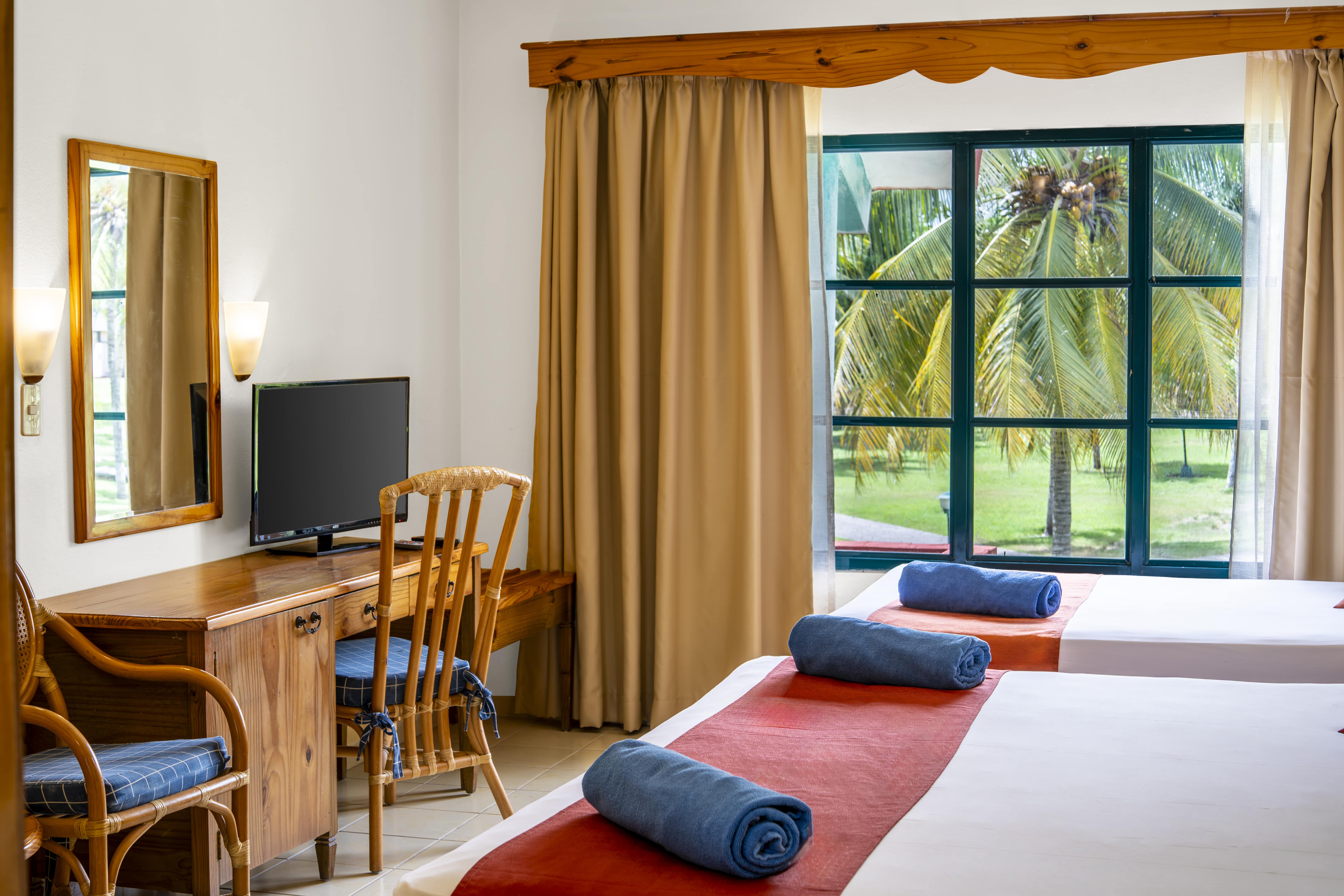 The standard garden view rooms at Starfish Guardalavaca offer a tranquil retreat with serene views of the lush tropical gardens. With cozy and functional décor, each room is equipped with modern amenities to ensure a comfortable and relaxing stay in a stunning natural setting.